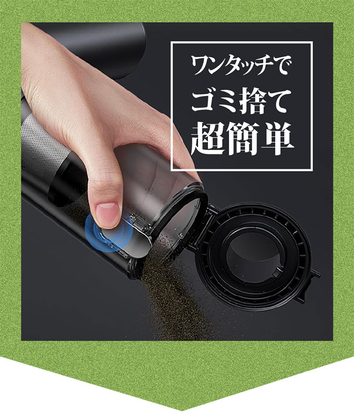 ダストカップはワンタッチで開閉できる専用設計なのでゴミに直接手を触れずにスムーズなゴミ捨てが可能です。さらにフィルターは水洗いOK!洗った後はブロワーで水気やホコリを飛ばして使えます。